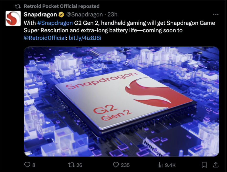For the time being, Retroid only suggests that it will present something futuristic later this month. Specifically, the company has confirmed it will announce more details on October 27. In the meantime, Qualcomm may have already hinted that Retroid's next gaming handheld will use the Snapdragon G2 Gen 2, a chipset that debuted in March alongside two other gaming-focused chipsets.