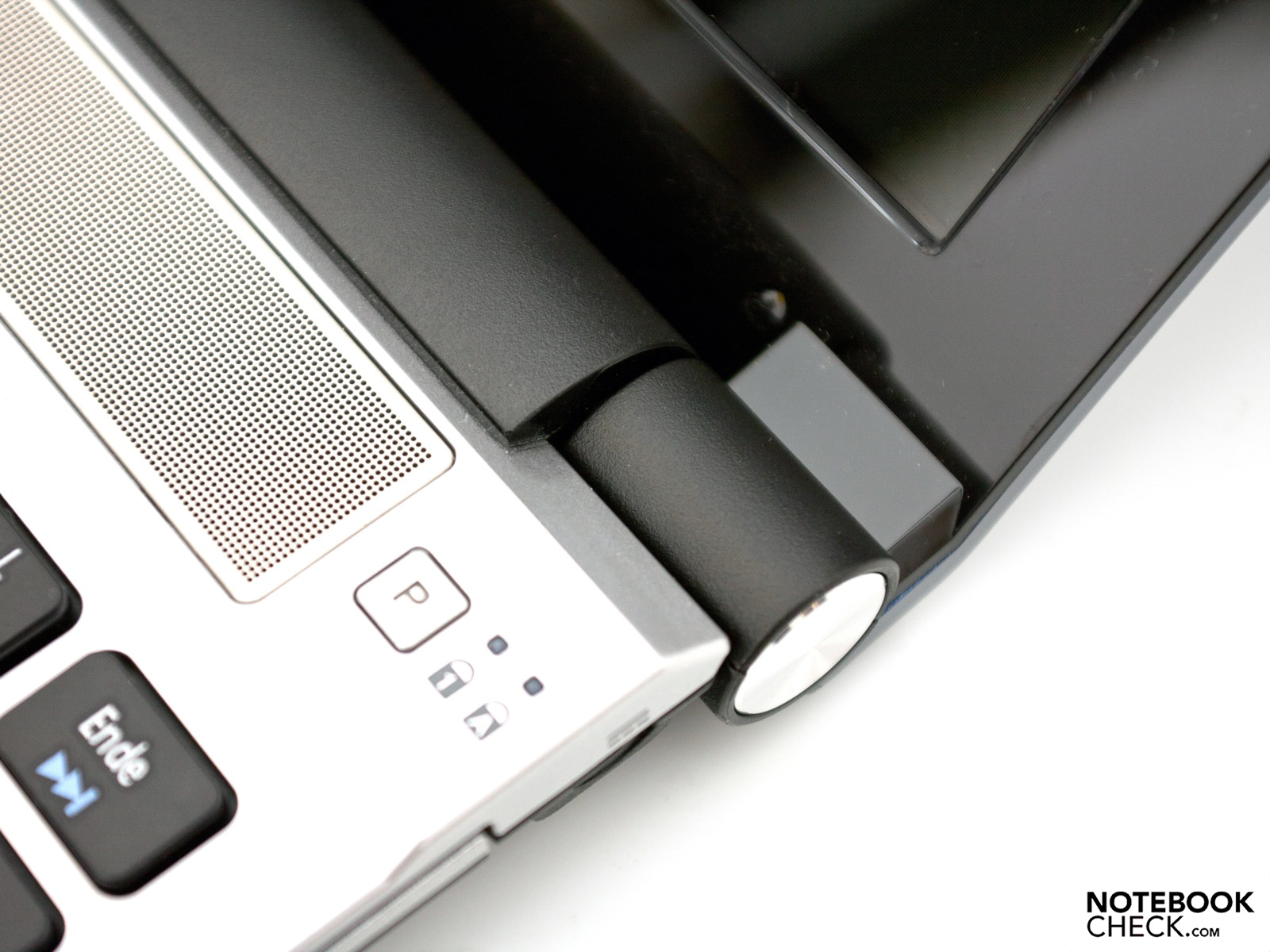 The sturdiness of the case left us with an overall good impression and the good workmanship of the used material is a plus point. Only one sharp corner in the display border ruins the otherwise good ensemble. The bigger and outwardly placed display hinges are a new feature. They hold the display stiffly in position. Sadly, there are still a few flaws: the case behind the display is not very sturdy (so pressing down on it may cause distortions to the displayed picture), the display is not held securely in position and moves slightly, and the user has to use both hands to open up the display. The screen allows itself to be opened up to 145 degrees, which is very good.