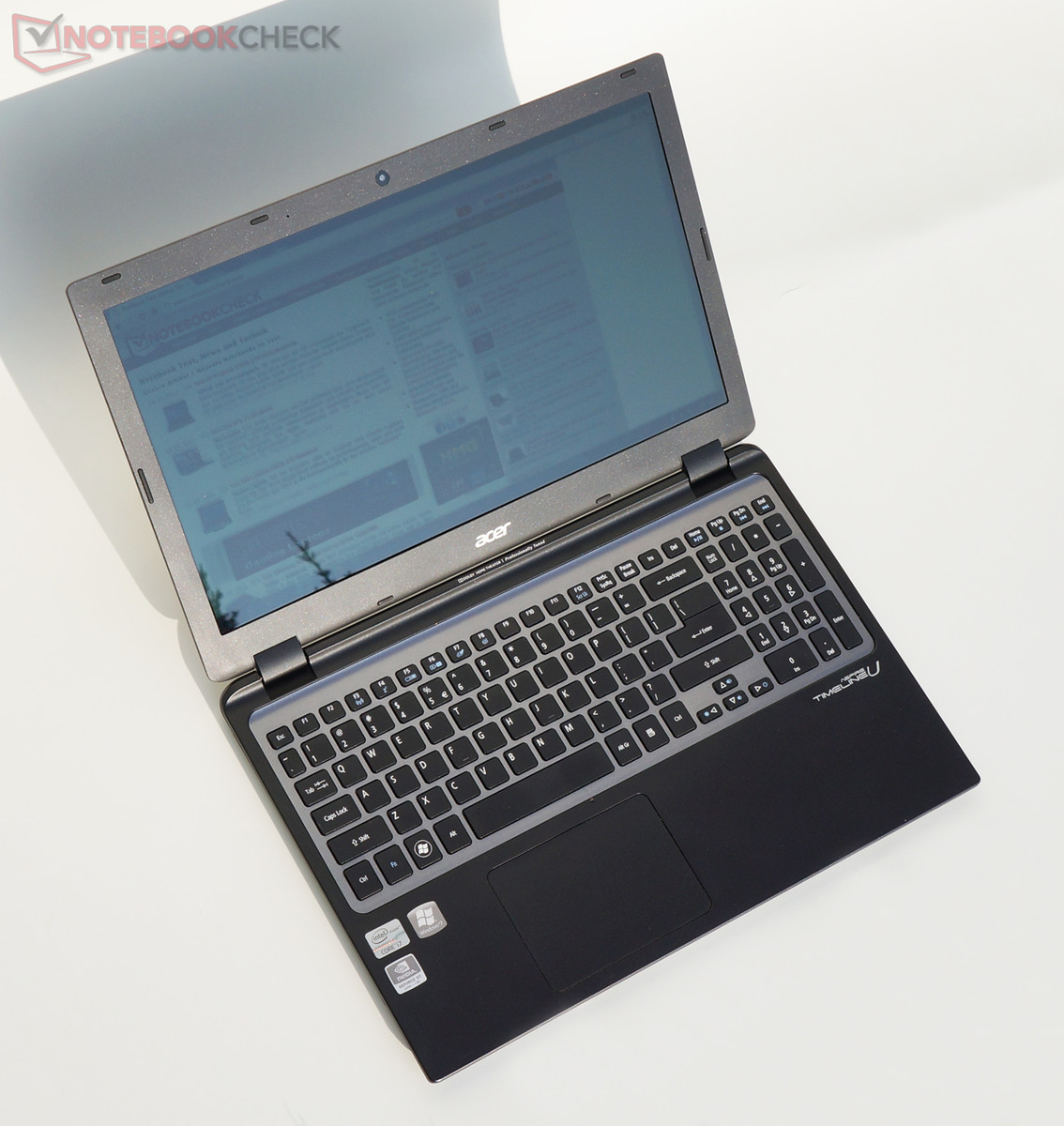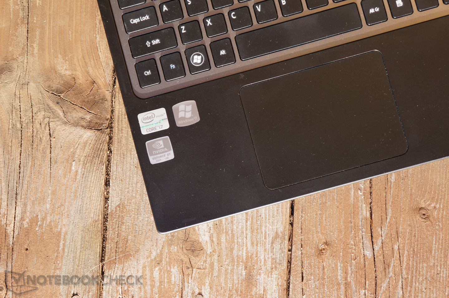 Acer has again foregone the floating style keyboard of the Aspire M3 and instead uses the island style design with individual keys. The keys - as typical for Ultrabooks - offer only a short depth, yet can be used properly and offer a clear pressure point. The individual keys are big enough and the layout of the US keyboard of our test device is good. Perhaps surprisingly, a small number pad has also made it into the 15-inch case. The cursor keys have turned out to be rather frugally dimensioned, as too are the function keys, which is to be expected on notebooks of this size. Special functions are performed via Fn combinations.
