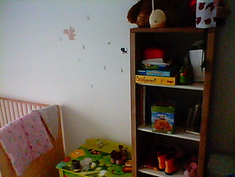 The 0.3 MP camera is not suitable for shooting pictures. First, because it is placed on the front, which actually only enables taking self-portraits. Second, the image quality is out of question because the pictures are very blurry and exhibit many artifacts. The pictures are perhaps still acceptable as snapshots in bright ambient light. In low light, dark areas are completely blackened, the image exhibits severe noise and the content partly becomes unrecognizable.