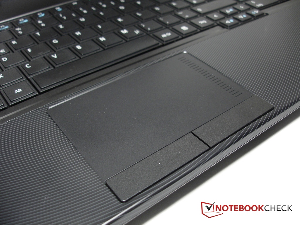 As mentioned earlier, the case has been given a minor facelift in comparison to the 2010 model. The look is more straightforward and less robust than in the last models. The design proves to be stylish and unostentatious. The optical illusion that is supposed to be created on the lid is successful: We first see that it's not polished aluminum, but a high-gloss plastic surface when looking closer. The conventional looks of the precursor has been skillfully improved and the case appears in a new "shine". The notebook's other components, so keyboard, touchpad and the big lid cover basically consist of matt materials. However another optical highlight has been set directly around the touchpad by means of a plastic pattern.