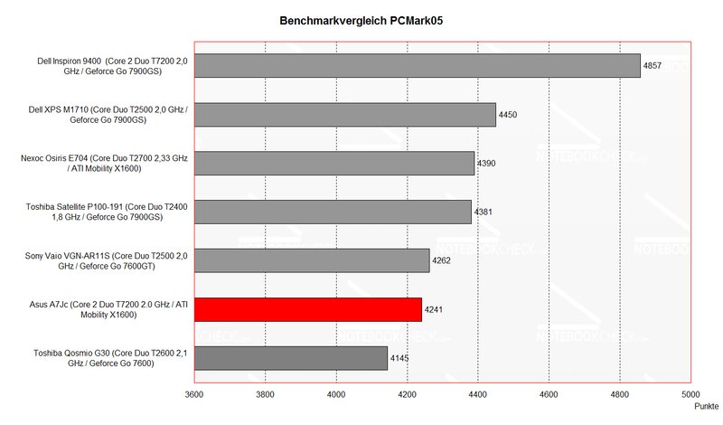 The A7Jc rated good in the fields of applications as well as at benchmarks. Still it is not top. The T7200 Core 2 Duo CPU with 2,0 GHz still has unused reserve capacities.