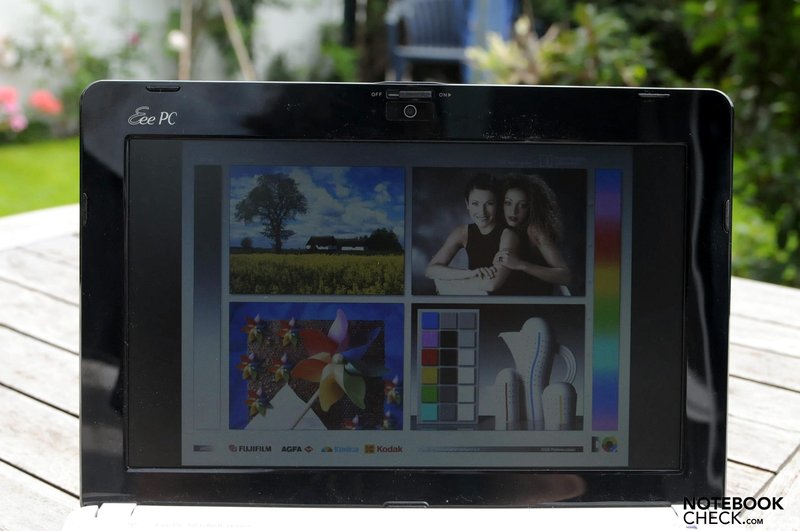 A netbook is made for mobile use. Thus, the display also has to be accordingly suitable for outdoor use. This is also the case in the Asus Eee PC 1015B. At first, nothing is reflected thanks to the matt display. Moreover, the brightness is high enough to even use the netbook outside of shadows. Thus, there shouldn't be much in the way of using the Asus Eee PC 1015B outdoors.