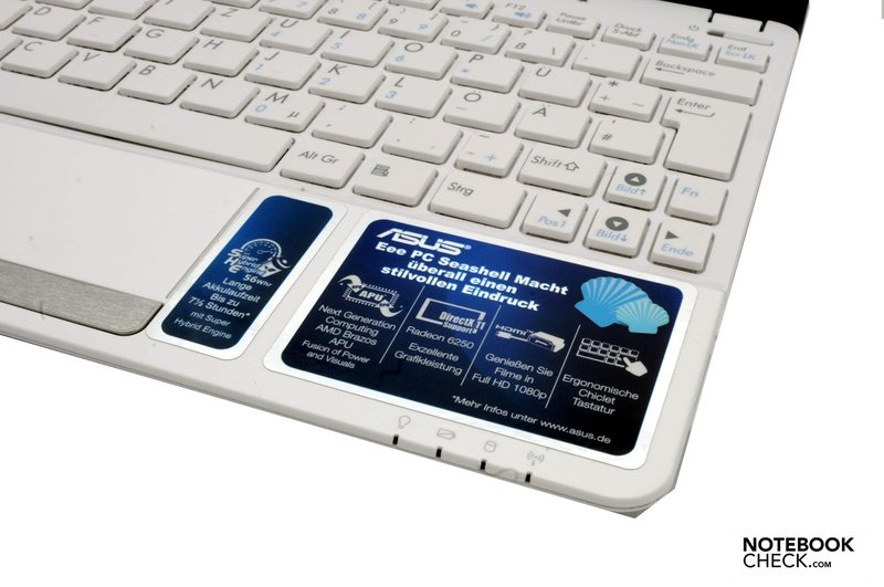 AMD's graphics chip, Radeon HD 6250, is concealed by the familiar seashell case. It even supports DirectX 11. The graphics performance is to especially benefit from the Fusion Accelerated Processing Units. The bundle is rounded off by a 250 GB Western Digital hard disk and a 1 GB DDR3 RAM. Asus still relies on a matt screen. Find out in the following review what the netbook really can accomplish and where it is positioned in comparison to the Intel models.