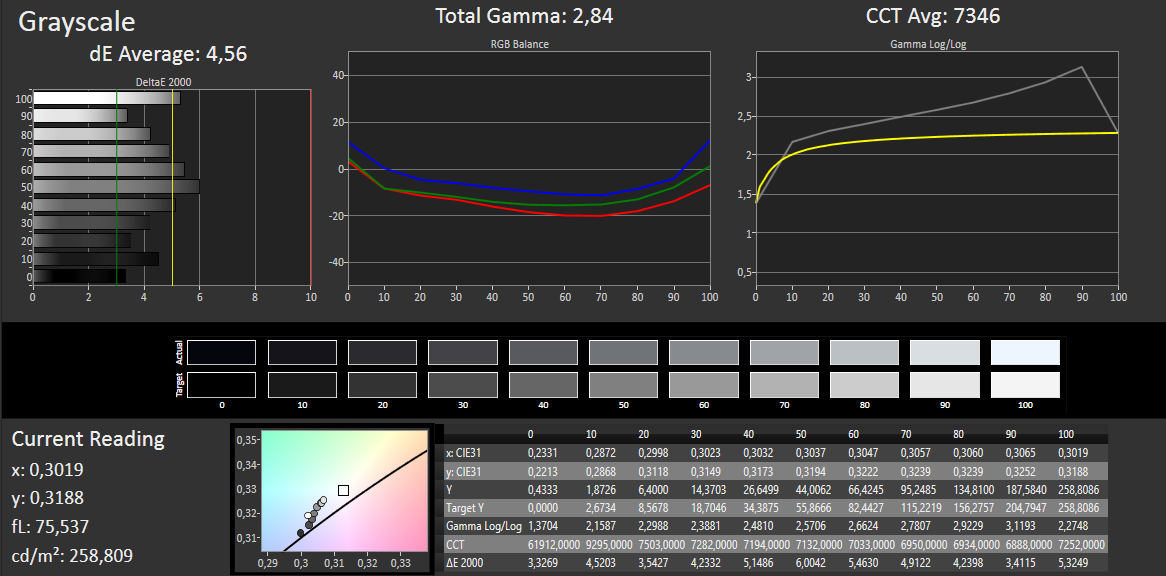 ΔE Greyscale Calman: 4.56 | ∀{0.09-98 Ø5}