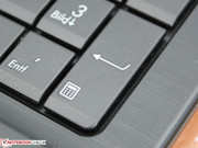 The numpad is just as much part of an office machine, as the battery in a laptop. The keys are a bit narrower than the others, but have the standard layout of a desktop keyboard. Enter is additionally mapped with the calculator. The arrow keys unfortunately have become victims of space limits and are squeezed under the arrow keys.