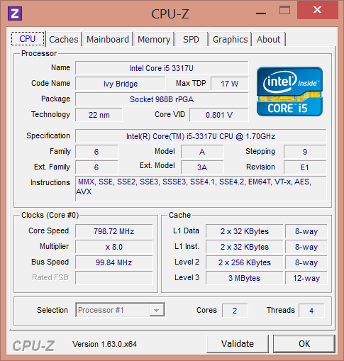 As mentioned, Intel's Core i5-3317U ultra-low voltage processor is responsible for all computing tasks in the 13-inch Asus Taichi 31-CX003H. The ULV (ultra-low voltage) CPU, also used in Lenovo's IdeaPad Yoga 13 and Zenbook Prime UX31A, is one of the most popular and frequently installed central processing units in ultrabooks. It features an economic TDP of 17 watts. The chip is clocked at 1.7 GHz and can be clocked up to 2.6 GHz via Intel's Turbo Boost technology according to the processor's specs.