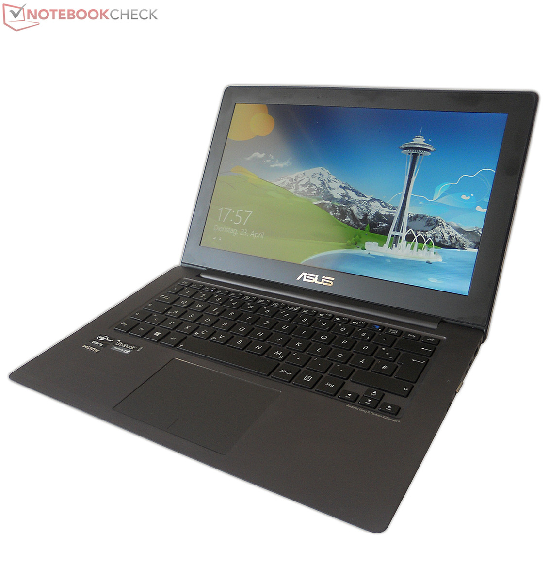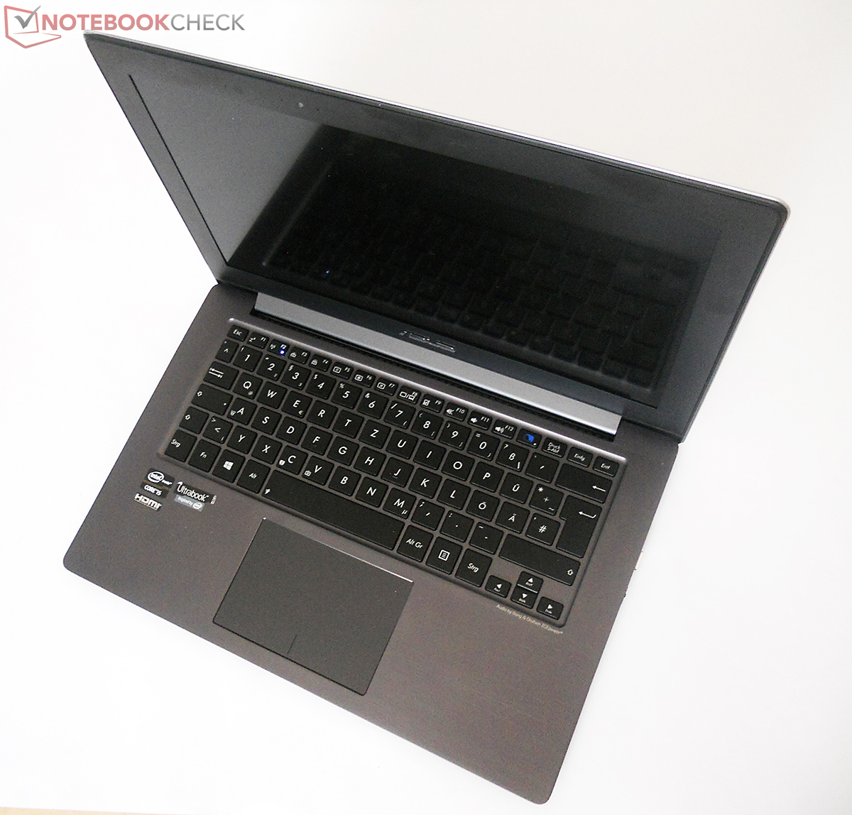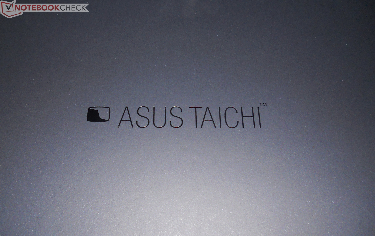 Like in the smaller, 11.6-inch Asus Taichi 21, Asus uses a robust yet elegant unibody casing comprised of dark, brushed aluminum for its 13.3-inch device. Not only the pleasant and high-quality feel and looks are excellent, but the very high stiffness and pressure resistance are equally outstanding. However, this compliment cannot be made to the same extent for the 8 mm display lid, which is due to the use of two screens. Light to medium force causes the display to warp visibly and thus does not completely confirm the device's premium claim in this point. The display hinge's smooth mechanism is pleasing and makes it possible to open the tablet-ultrabook with one hand. Then again, we would have appreciated a slightly tighter pulled hinge because the display lid, which almost seems too big for the device, is not always kept firmly in position on shaky surfaces.