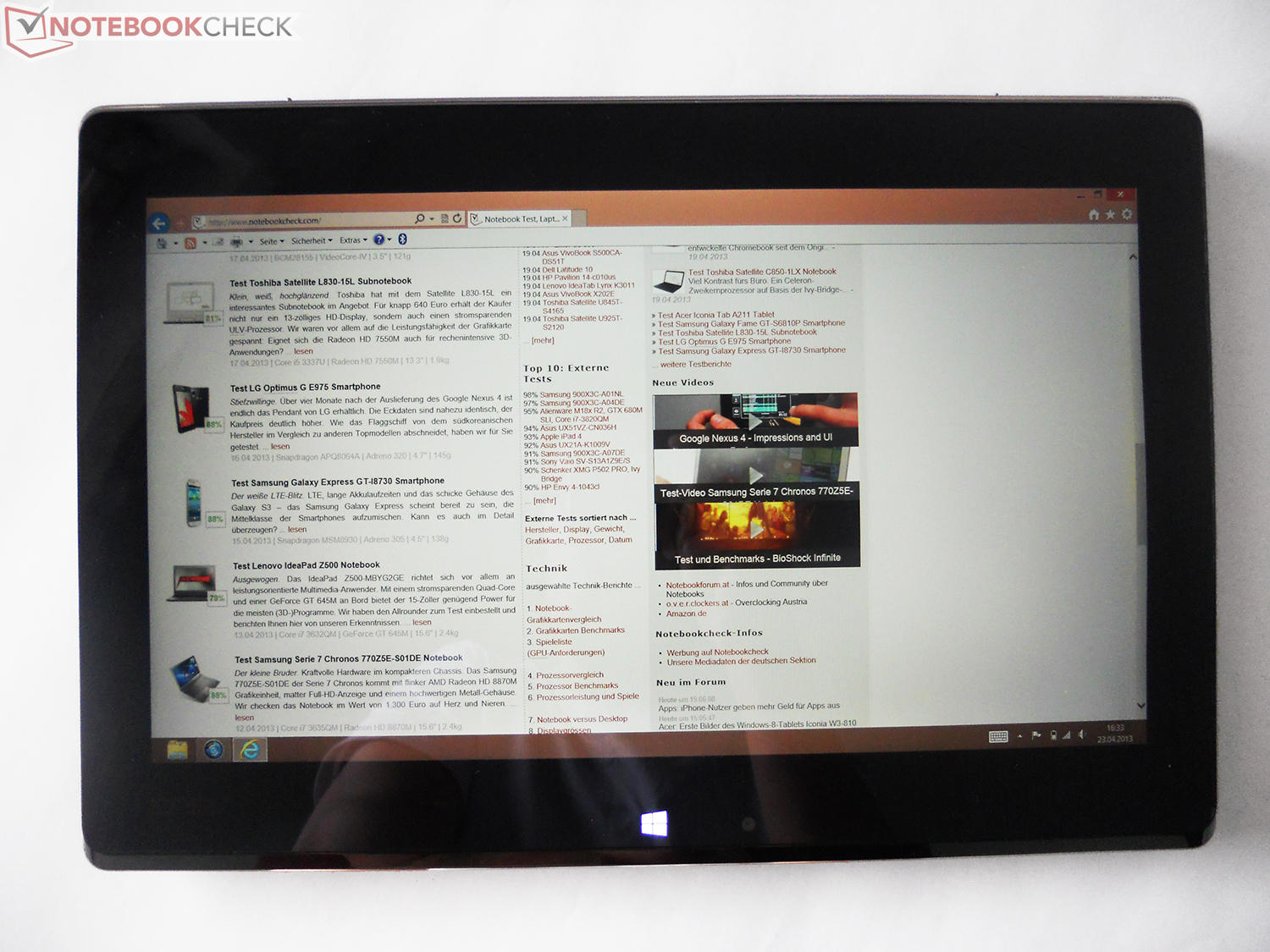We cannot fault the hardware. The Full HD IPS screen's razor-sharp picture, very good image quality and reliable detection rate of various multi-touch gestures is impressive. The only thing to criticize here is the brightness sensor. In our opinion it responds too quickly and above all, it clearly dims the screen's good maximum brightness to a very large degree so that we would advise its deactivation and to adapt the brightness manually.