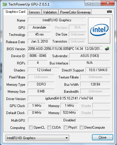 The Asus U36JC has a special feature in the graphics field. Intel's HD graphics incorporated in the processor is complemented with an additional Nvidia's Geforce 310M. Both chips can be used by Nvidia's Optimus technology and should provide more performance, respectively lower power consumption, depending on the requirements.