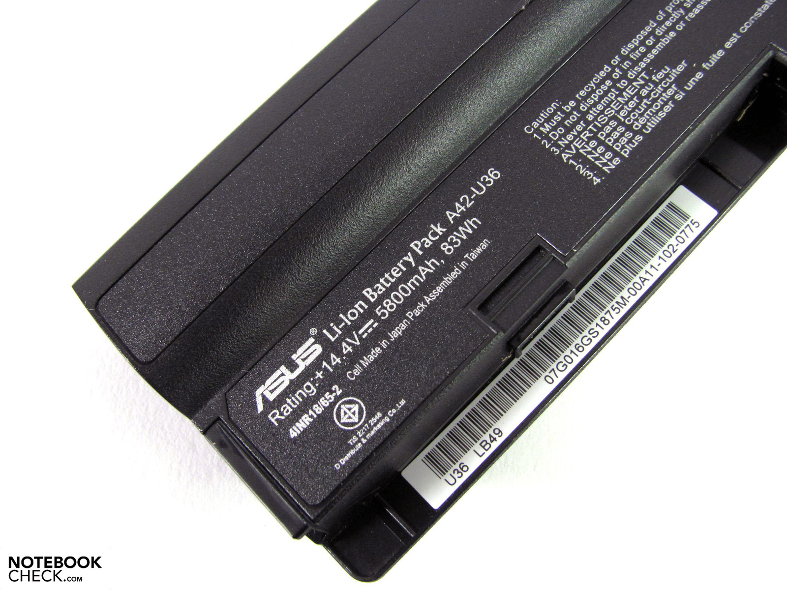 Asus has given the U36JC a very high capacity 8 cell battery. 84 Wh are very unusual for a 13" notebook. A 4 cell battery is allegedly also available, which particularly would have an advantage on weight and height. The smaller battery is currently neither found alone nor are there configurations with this alternative.