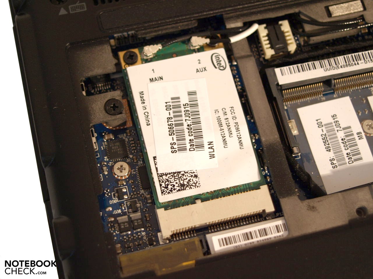 Depending on the model, but included in our test machine, is HP Mobile Broadband Wireless. Once you have set up a contract with a wireless service provider, this allows you to surf the net via 3G/UMTS. The relevant SIM card slot can be found in the battery compartment. According to HP, this module can also be added later.