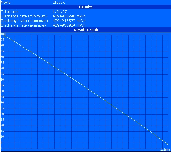 In the more realistic test involving internet surfing over WLAN, and with maximum screen brightness and the energy-saving profile activated, the six-cell battery lasted 213 minutes. Also when a DVD is played with optimum performance and brightness settings, the Elitebook 2530p lasts for 179 minutes, no problem for a film of average length.