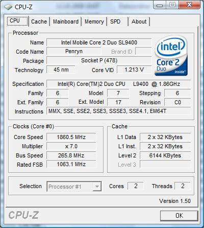 The TDP is only 17 W for the SL9400 and SL9600 chips; the SU9300 is even lower at 10 W. By comparison, the energy-saving P models have a TDP of 25 W while the T models, designed for high performance, reach 35 W.