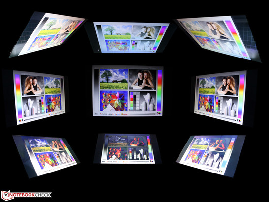 In terms of viewing angle stability, both our Envy 17 test device and the Asus N750 don't stand a chance against the ATIV Book 8 with its IPS-like (in terms of vertical viewing angles) MVA panel. Although it takes a very narrow horizontal angle before contrast shifts can be noted (140 degrees overall), color inversions occur quickly when vertical displacements are unavoidable.