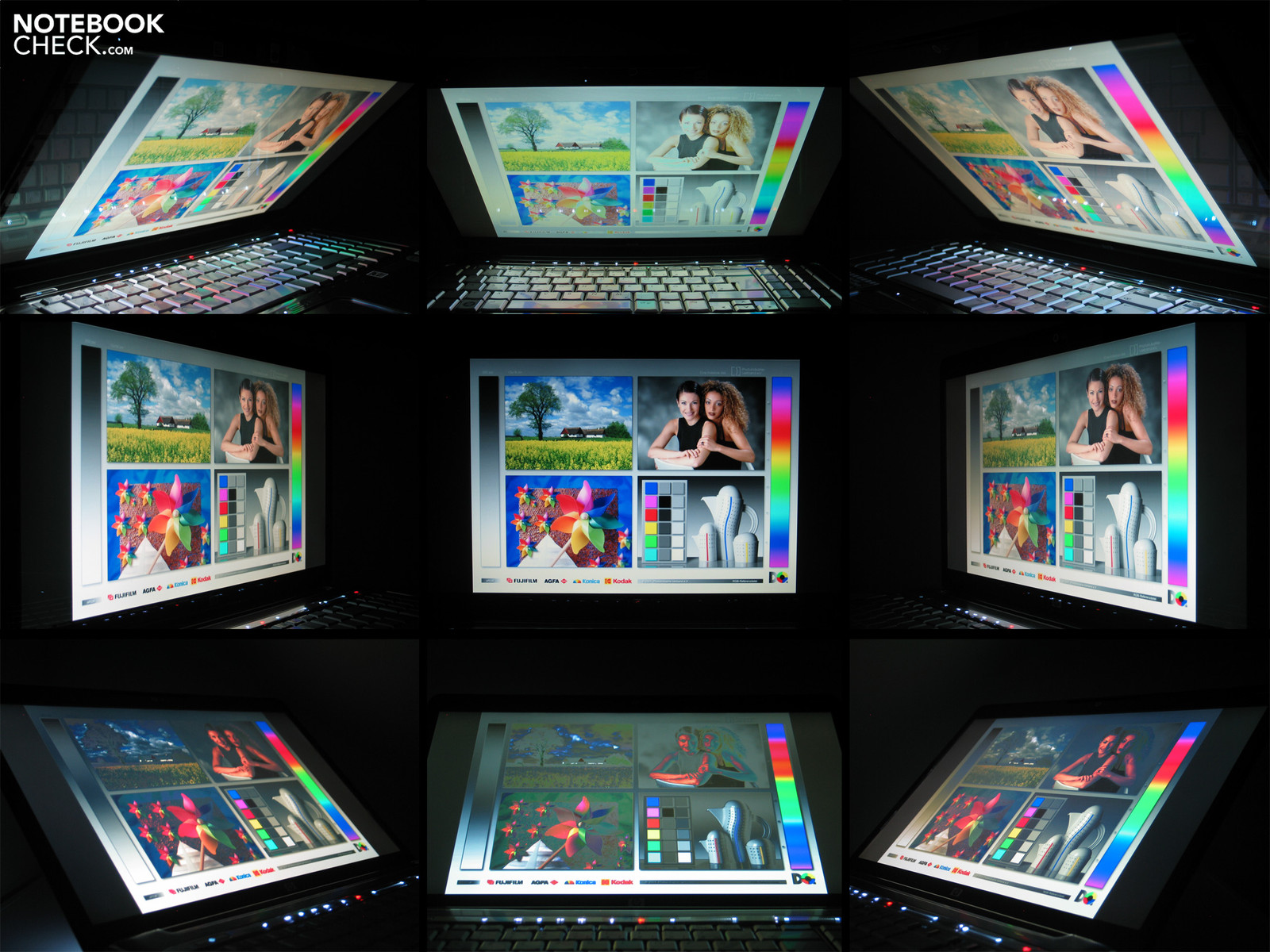 Also the possible viewing angles are determined by the reflective display. Both horizontal and vertical fields of vision end up with a departure from ideal perpendicular viewing angles which briskly causes disturbing reflections, even before visible changes to the picture appear.