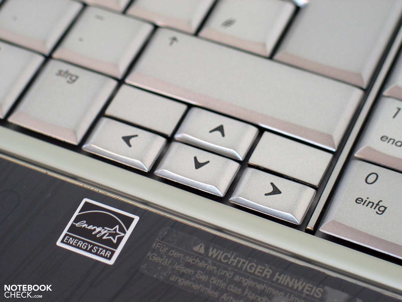 The touchpad is covered in a chrome layer, just like the corresponding buttons. The resulting mirror effect looks very good, but doesn't contribute anything to practical use. As a result, unsightly fingerprints collect here very quickly and also the slipperiness of the keys can only be seen in a positive light by those with dust-dry fingertips.