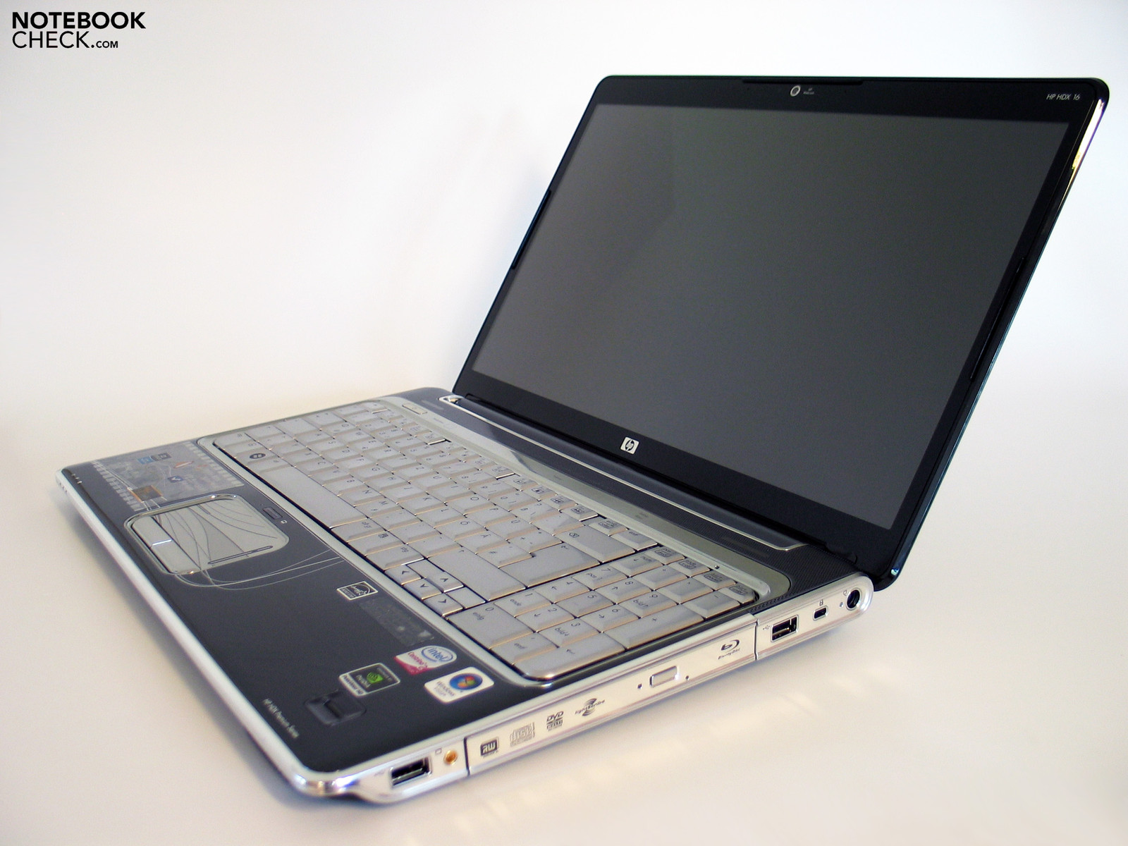 The form of the case resembles that of the recent Pavilion dv6 series. It's only through the display that both series pursue different concepts. Whilst the dv6 has a conventional display with reflective surfaces and a high gloss enclosure, the display of the HDX16 employs an "Edge-to-Edge" design, which is to be seen in the current Macbooks or the Studio XPS laptops from Dell. Optically speaking you should have nothing against this, as long as you can get along with the reflective display.