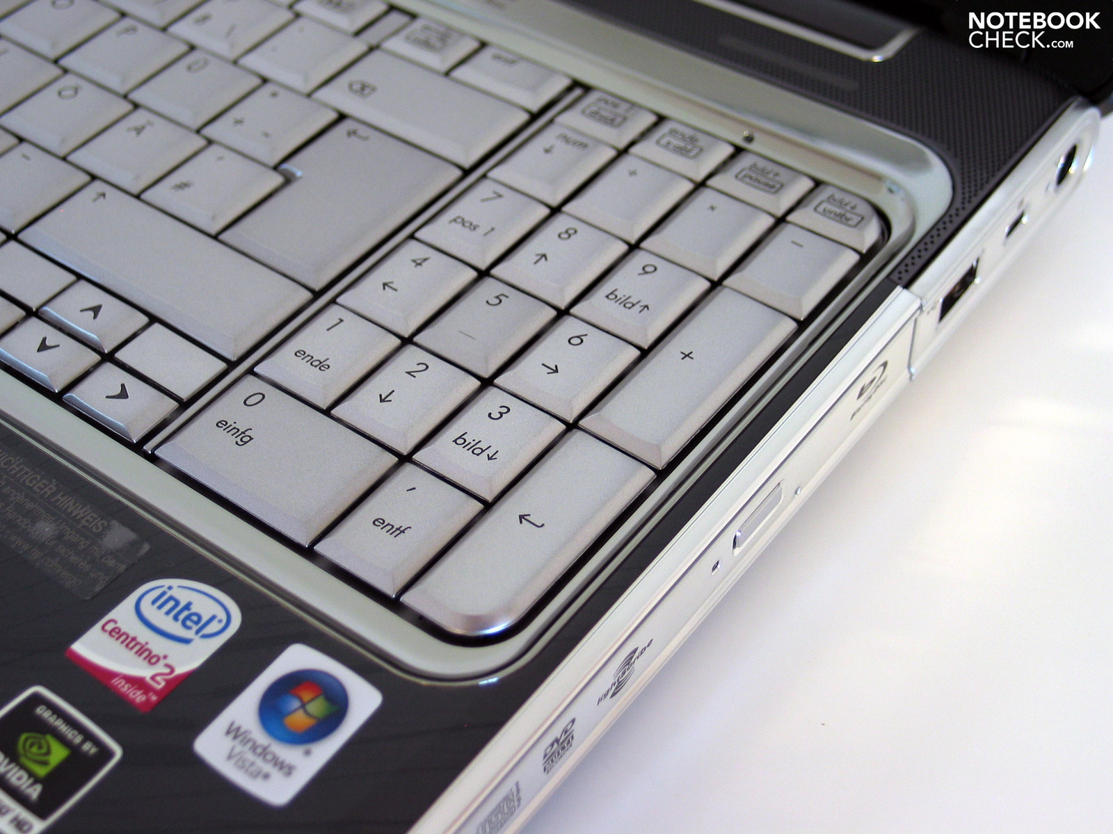 When it comes to input devices obviously the design was more important. For example, the keyboard has a silver coating, and it feels however very glossy and almost gluey. As for layout and the keys on offer in the HDX16, nothing is objectionable. In the enclosure you'll even find room for a separate number pad, which fortunately doesn't cut back the standard keyboard in its size. As a single mistake in the design of the keyboard there are the arrow keys, which are barely half the size of the numeric keys. Especially from intensive use, such as steering in a racing game, there is a very unpleasant hand posture. There is only the possibility of reverting to the optional cursor keys on the number pad.