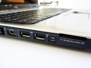 Because of its design specifics none of the interfaces could be located at the notebook's backside. Besides of the audio ports, the infrared port and the WLan switch, all other interfaces were located left and right of the notebook. The dv9033cl also provides a HDMI interface, while the dv9074cl does not.