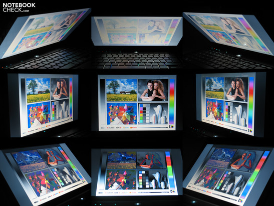 The stability of the viewing angle of the display comes off as narrow as usual in the vertical area of sight, whereas disturbing distortions of color already become visible at slight deviations from the ideal viewing angle. These do remain within limits for a long time in the horizontal area, but one has to struggle with unpleasant reflections all the more.