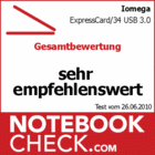 The Iomega ExpressCard/34 USB 3.0 expansion bestows notebooks from the entry- and mid level without eSata or USB 3.0 with a very high-performing interface which in many cases can take over the power supply. The price is acceptable by comparison, the features and use fast and easy.