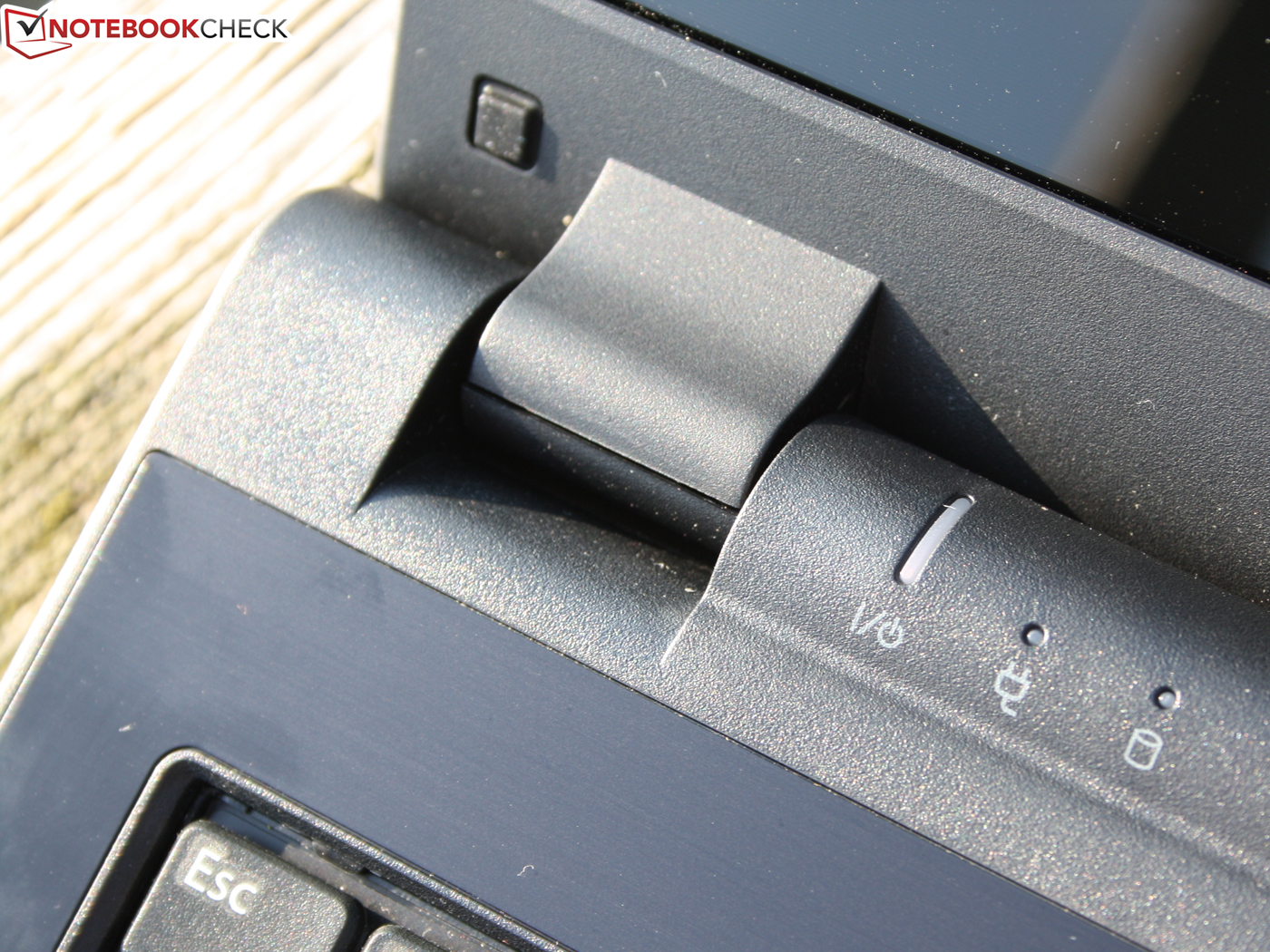 The case is sufficiently rigid, but can be warped a bit with applied force. The bottom has a few maintenance covers that clearly yield. The display hinge is mounted tightly to the case and lets the lid hardly teeter. Although the screen is kept firmly in place, we only need one hand to open the notebook due to the base unit's high weight.