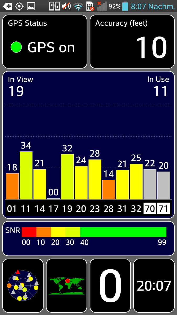 The installed GPS module leaves us with mixed feelings. The smartphone only accomplished a rather imprecise position fixing indoors. However, the GPS module quickly provided an accurate localization and maintained this accuracy even during further usage outdoors.