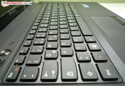 Lenovo offers a complete keyboard for the buyers of the B570 (a separate numeric pad for easy input of numbers is included). The user can type with great accuracy thanks to the slight concave shape of each key and the good spacing between the keys. The Enter and right Shift key are small so as to give the cursor keys enough room to fit into the keyboard. The stroke distance is short but precise and the typing noise is a dull clicking noise. The keyboard is installed securely in the laptop and only gives way when a lot of pressure is applied. Users who need to type a lot on their home/office notebooks will be happy with the B570.