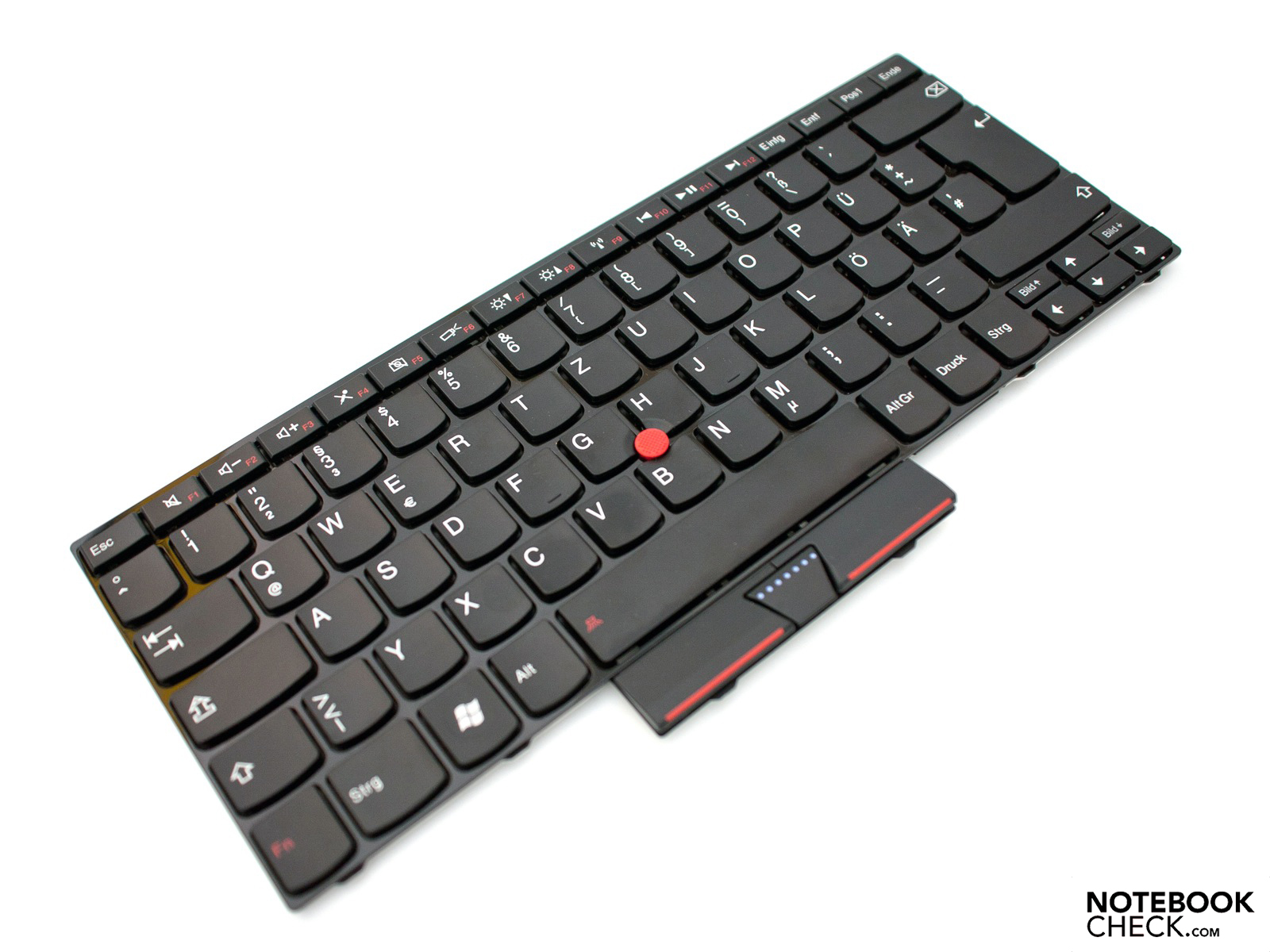 Lenovo doesn't make any compromises in regard to the keyboard and relies on the tried and tested chiclet style layout. It is also used in the ThinkPad Edge 13 and Edge 15 laptops. The keyboard, including its high-gloss surfaces, merges well into the overall image optically and the typing feel makes a good impression. The pressure point is palpable and the key drop is short, whereas the clearly protruding keys and the concave form will remain to be a matter of taste.