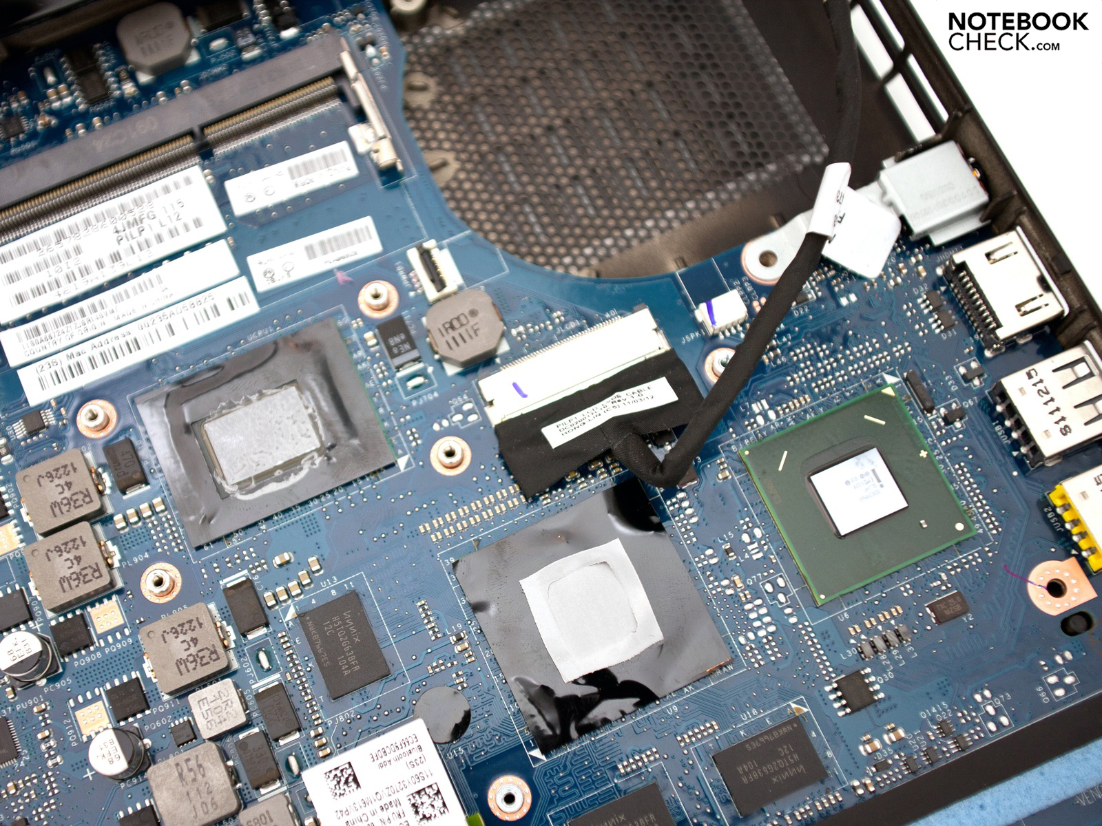 The communication options have a sound scope ex-factory and the latest standard is available. Besides a gigabit Ethernet via a controller from Realtek, there is also an Intel WiFi Link 1000 BGN adapter installed, which supports WLAN standard 802.11 b/g/n and Bluetooth 3.0 +HS. The top model goes a step further with an integrated 3G UMTS module. The less expensive devices without this extra have a SIM slot, but the mini PCIe slot is empty and the necessary antennas aren't installed. Thus, it's not possible to retrofit this option.