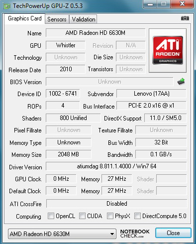 The AMD Radeon HD 6630M celebrated its debut in the review of the Dell Vostro 3550 by us. After a few tests, it also gets obvious in this review that this GPU is aimed at casual gamers who don't have a very high demand. However, even newer games can be played in medium pre-settings with cutbacks in resolution and picture quality (AA & AF). The native resolution of 1366x768 pixels is as far as it goes in most cases concerning resolution. Gaming in Full HD (1920x1080 pixels) with the according pre-setting is not possible due to the low frame rates. The majority of office notebooks don't score as good as the ThinkPad Edge E420s, though.