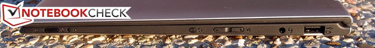 The Yoga 2 Pro’s port selection is actually identical to that of its predecessor, though once again, some rearrangements have taken place. There’s still two USB ports—one USB 2.0 and one 3.0—but the one on the left side of the notebook now has a bit more room to breathe, thanks primarily to the conversion of the HDMI port to an HDMI mini. The SD card reader has also moved to this side of the unit, along with the charging port. The only ports to be found on the right side are the 3.5 mm combo audio jack and the USB 2.0 port, but now, this is also where you’ll find all of the buttons—a better organization overall.