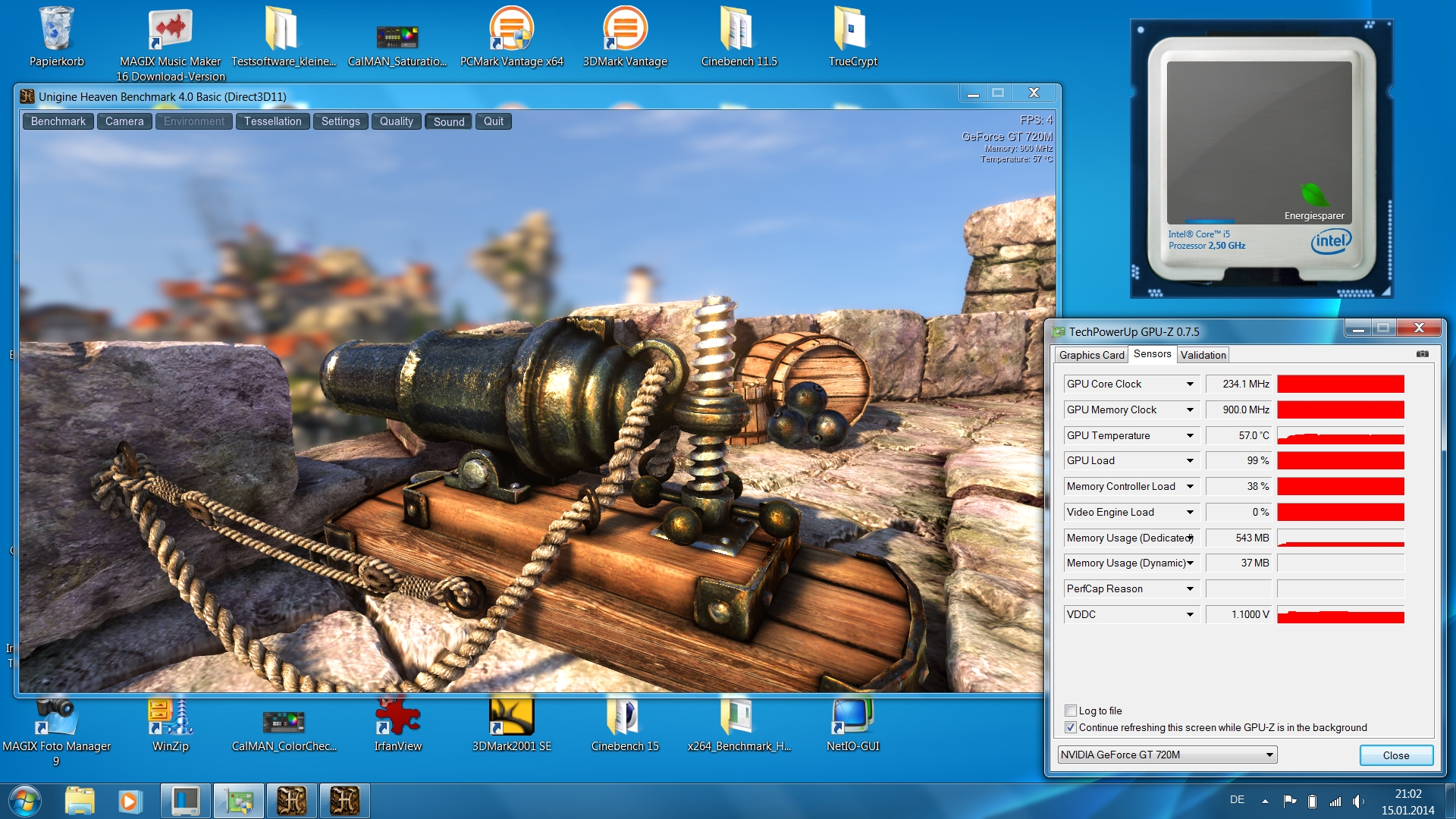 The 720M does not achieve stellar results in the 3DMark benchmark. But here we can easily see that the HD 4600 profits greatly from the processor's performance. The Nexoc B509II (Core i7-4702MQ) only has this IGP, but in the graphics test it manages 19% better than our test device with its dedicated GPU. Conversely, an HD 4600's performance in conjunction with a slower processor, like in the ThinkPad E540 (Core i3-4000M), is 8% slower. Because their GPUs are considerably stronger, the CX61 does not stand a chance against the two competing systems from Acer and Lenovo.