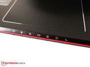 The next product generation should have a matte exterior (as in the past: the GT725). MSI should not have applied the glossy finish to the keyboard base either. Who wants to clean the keyboard every day? The matte screen (borders) can only undo some of the damage.