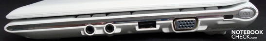 There isn't anything special to be found on the N120 in view of connectivity. 3x USB 2.0, VGA, network, Kensington lock, audio in/out, cardreader and a 1.3 MP SXGA webcam cover the usual basic supply. The Samsung is befitted accordingly with Bluetooth 2.0 and WLAN b/g for wireless communications. So there's nothing standing in the way of using external periphery, as for instance USB hard disks, Bluetooth mice and external monitors.