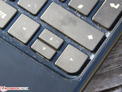 In the front area of the pads there is one button (not two) for a simple click. The key offers a sufficient hub and clicks in a quiet manner. The matte pad-surface allows fingers to glide smoothly across it and remains sensitive all the way to the edge.