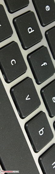 In terms of usability, the keys provide shallow travel with relatively soft feedback that can feel very similar to the keyboards of Samsung's premiere Series 9 notebooks. Thus, users who are accustomed to desktop or beveled keyboards may need some time to feel comfortable with the lighter keys of the small Chromebook.