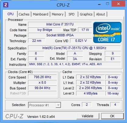 Our test device sports the strongest CPU that Schenker offers for the S402: Intel's Core i7-3517U. The dual-core CPU comes from the Ivy Bridge processor range and features a base clock of 1.9 GHz. Its speed can be boosted to 2.8 GHz (both cores) or 3 GHz (one core) via Turbo. This ULV processor can run with a particularly low voltage which results in a low power consumption.