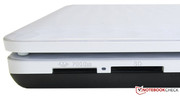 There can be no complaints about the build quality; we found nothing serious to object to. The white display lid is easy to open, although the base unit does get pulled up along with it. It is not possible - at least with this brand-new machine - to open it with one hand, because the hinges are very tight. The advantage of this is that the display immediately stays in the desired position when you adjust it and does not wobble at all. The display mounting, just under a centimetre thick, is very sturdy. Even when we applied a lot of pressure we were not able to make it flex or press against the display from behind. The Sony Vaio’s base unit appears to be just as robust.
