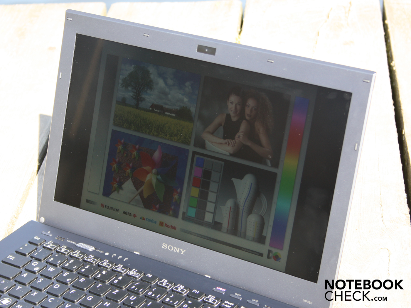 The 13.3 incher is well suitable for the sunny days of the year with its Vaio typical light AR coating. It doesn't completely prevent reflections (see pictures). A good outdoor suitability is given together with the good luminosity.