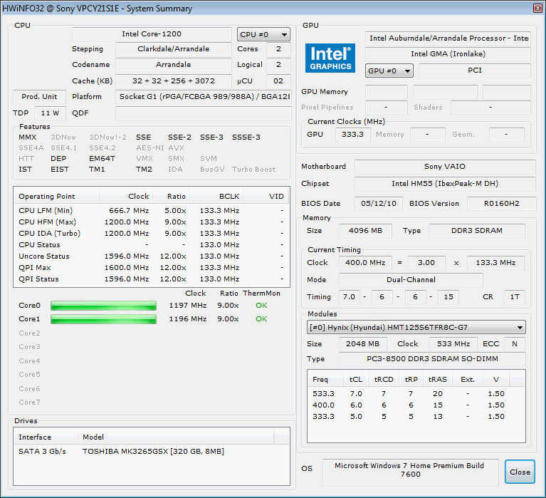 The Pentium U5400 (2x1.20 GHz, 3MB L2 cache) bears energy savings features of the new Arrandale generation. The CPU is manufactured in 32nm and has a TDP of 18 watts. That sounds like a lot, but the Intel HD graphics and the memory controller is included. Both are on the CPU bundle and simplify switching on the mainboard.