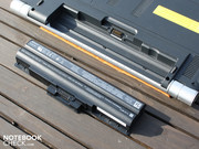 The Vaio VPC-Y21S1E's interfaces are distributed evenly on the right and left. The front has two cardreaders (SD and HG Duo) available right away. The rear is reserved for the battery unit.