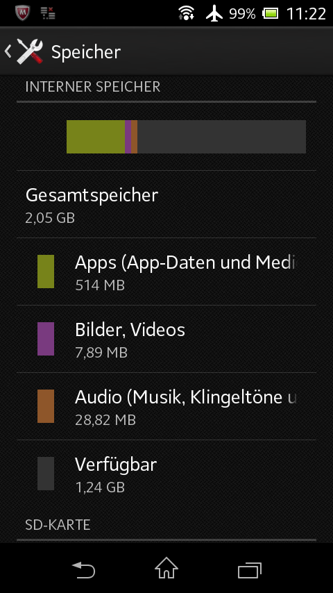 The preinstalled bloatware is not as compelling. Although the programs can be completely deleted, particularly McAfee's Antivirus is a bit tricky. It is not known whether a system update to Android 4.2 or 4.3 is planned. Sony tries to provide all of its current devices with updates but there is no clear statement regarding the Xperia M.