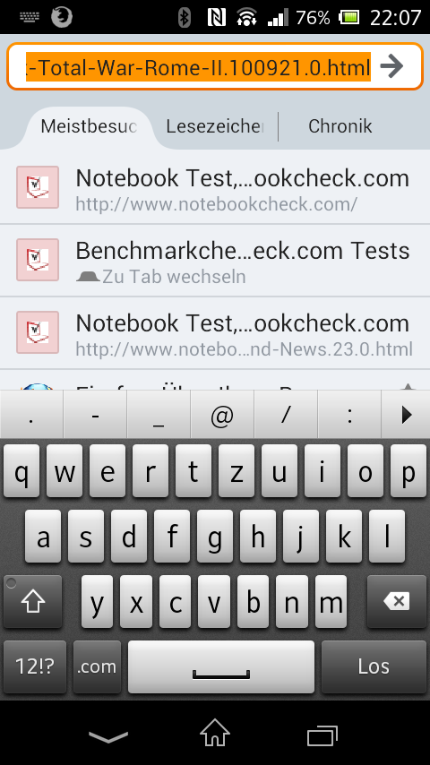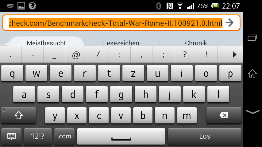 The virtual keyboard is very clearly arranged. It corresponds to a graphically enhanced standard keyboard from Android 4.1 but with an additional row above it. It displays frequently used characters when opened. Auto-completion suggestions are made when the user starts typing. The virtual QWERTY keyboard makes a very cramped impression in portrait mode. Users with large hands might have problems hitting the right key. Nevertheless, we were pleasantly surprised about the keyboard's accuracy. Typing in landscape mode was considerably more comfortable. The single keys have a larger gap and feature an agreeably big design. Unfortunately, they also cover almost the entire screen then.