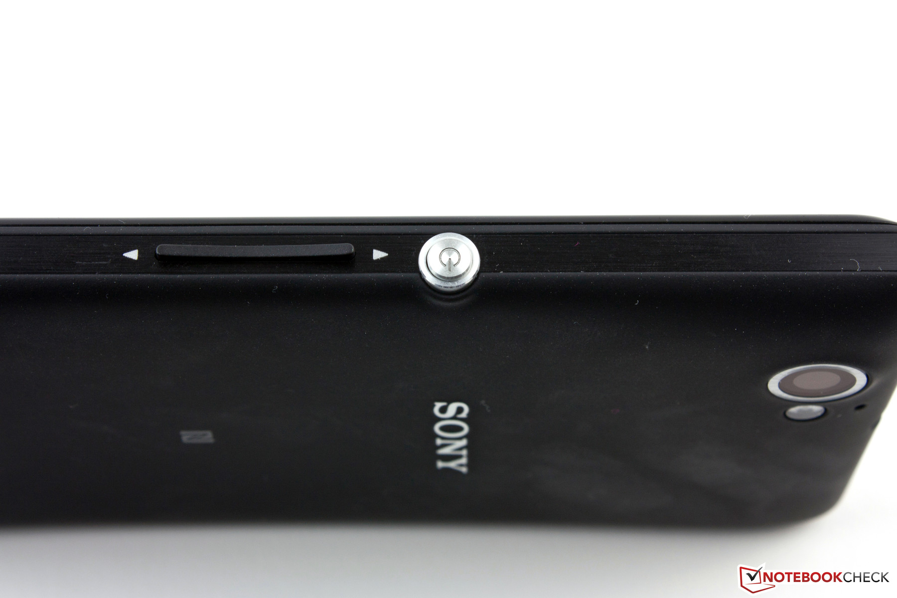There is no sensor field for using the operating system. This is only possible via the touchscreen. Nevertheless, there are three physical buttons. Besides the striking aluminum power button, we find the volume rocker and a camera button. The latter also enables going straight to camera mode from standby. Like in a conventional camera, the shutter release button has two steps. The first step is used for focusing and a picture is shot when the button is pressed down completely. The volume rocker is used for zooming when the camera app is active.
