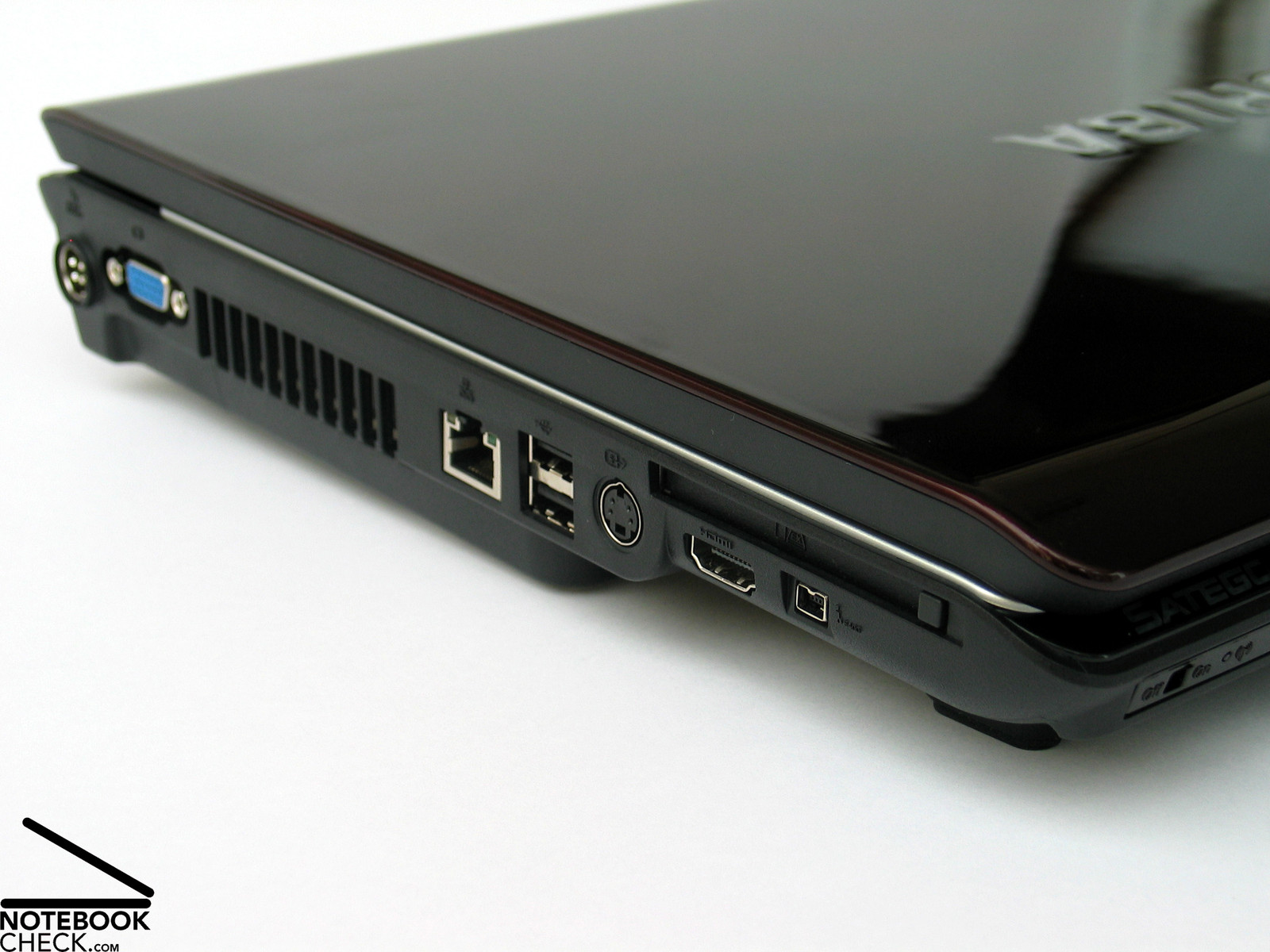 An important aspect of DTR notebooks is the interface equipment and their order, especially, if the notebook is, as the Toshiba Satego X200, not equipped with a docking port. The display plays an important role here, because due to the chosen opening mechanism the interfaces had to be located at the notebook's flanks.