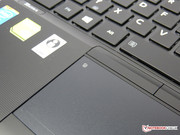 The buyer will not have to live without the mouse buttons below the touchpad. A few millimeters of the touchpad's lower part is separated by a light, horizontal rubber coating, and can be used for left and right clicking. Users with larger hands can easily and quickly disable the touchpad while typing when required. Toshiba installs a touch button in the upper left; the symbol lights up on the touchpad itself when the pad is disabled. Toshiba's "Eco Mode" can be activated in the same manner; the button for this is however found in the pad's opposite, so right upper corner.