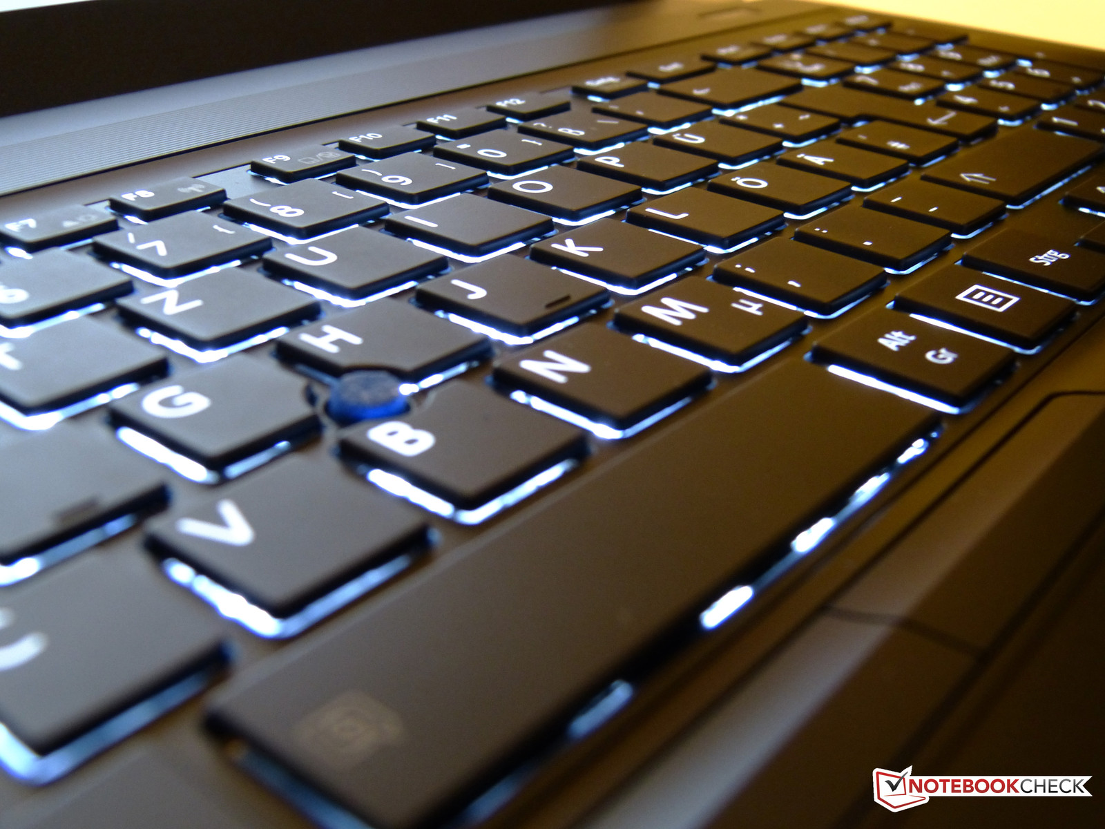The keyboard of our review sample makes an overall good impression. Besides a clear pressure point, it convinces with a first-rate typing feel that strongly reminds us of Lenovo's ThinkPads. The icing on the cake: Toshiba installs a keyboard backlight to facilitate working in the dark.