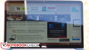 Outdoors, the XPS 13’s bright panel provide valuable support, yielding an easy-to-read display in shaded areas and a difficult—yet usable—picture in the sun. Reflections are most certainly still a major disturbance (it’s unavoidable on any glossy panel), but luminosity on this level goes a long way toward making up for that inadequacy. Finally, viewing angles are as good as we ought to see for an IPS panel.